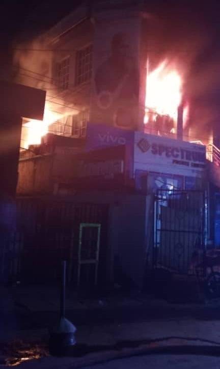 Emergency officials said responders arrived to find the building fully engulfed in flames, with thick smoke indicating intense combustion. The structure was largely used for storing and selling computers and accessories, and the high concentration of combustible materials was said to have fueled the rapid spread of the fire. Firefighting teams worked to contain the blaze and prevent it from spreading to nearby buildings.