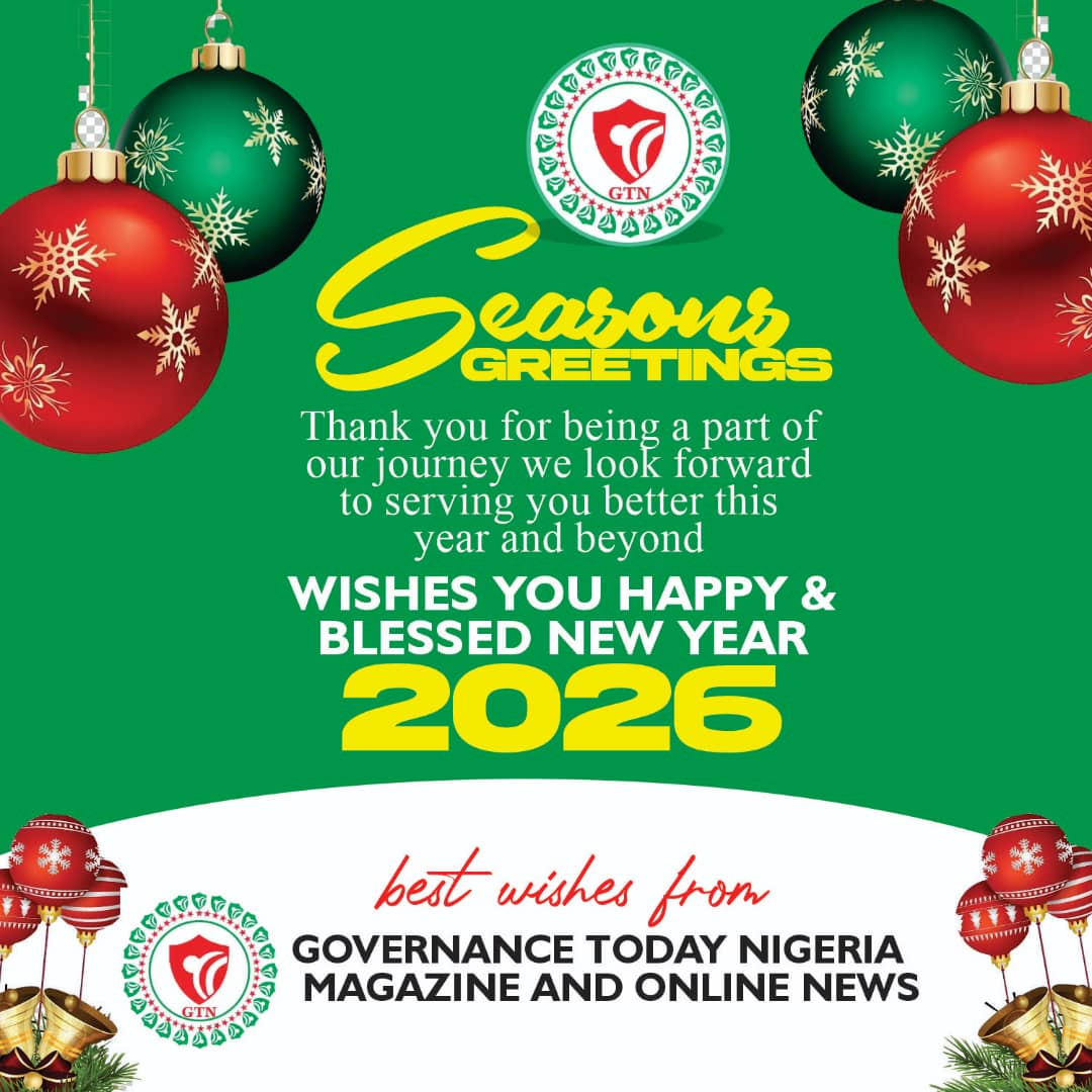 Season’s Greetings to our valued readers and followers. As we step into a new year, Governance Today Nigeria Magazine and Online News remains committed to delivering credible, timely, and in-depth reporting on governance, politics, and national development across Nigeria.